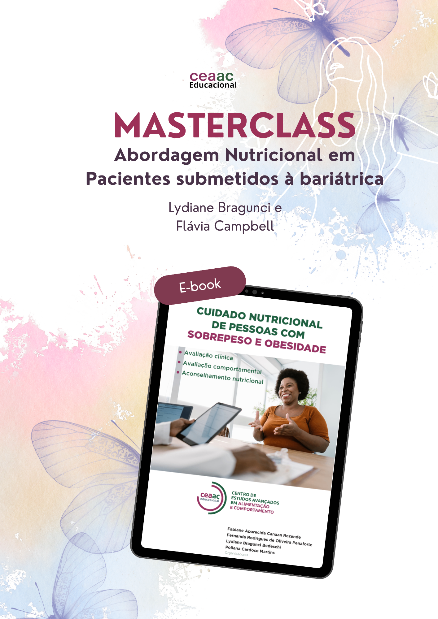 2. Masterclass "Abordagem Nutricional em Pacientes Bariátricos" (2h30) com as nutricionistas Flávia Campbell e Lydiane Bragunci - Certificado de conclusão de 15h de CA e 1 ano de acesso -R$97,00